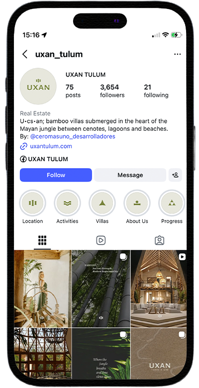 UXAN’s social media presence was built with precision—every visual, tone, and caption aligned with a clear aesthetic and voice. The Instagram profile became a curated extension of the brand: minimal, elegant, and immersive. We established a recognizable visual system that reflects the property’s essence and consistently connects with the audience.